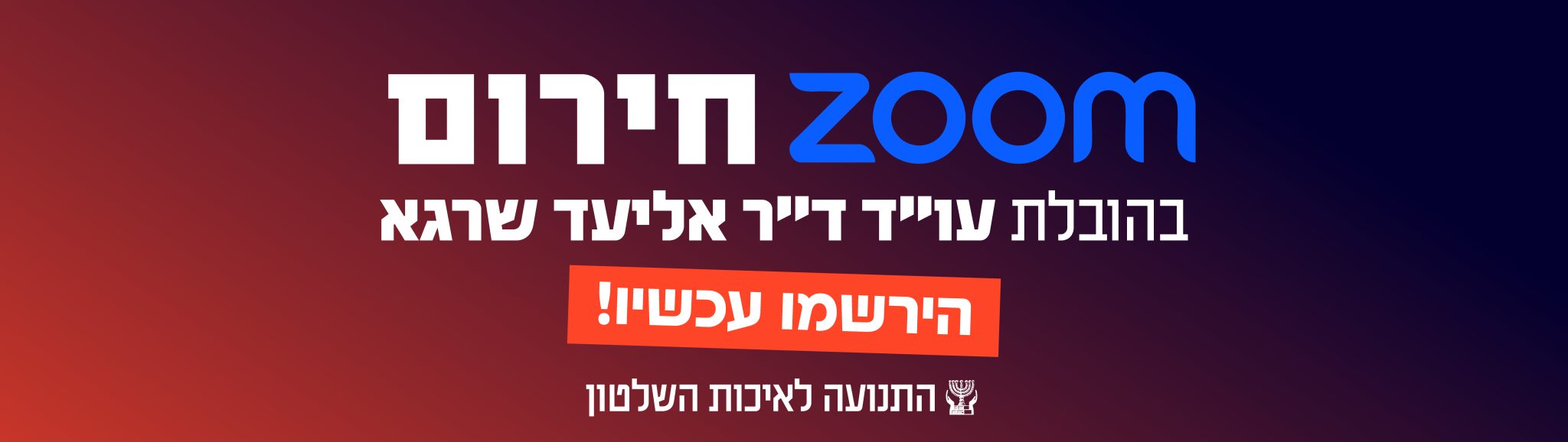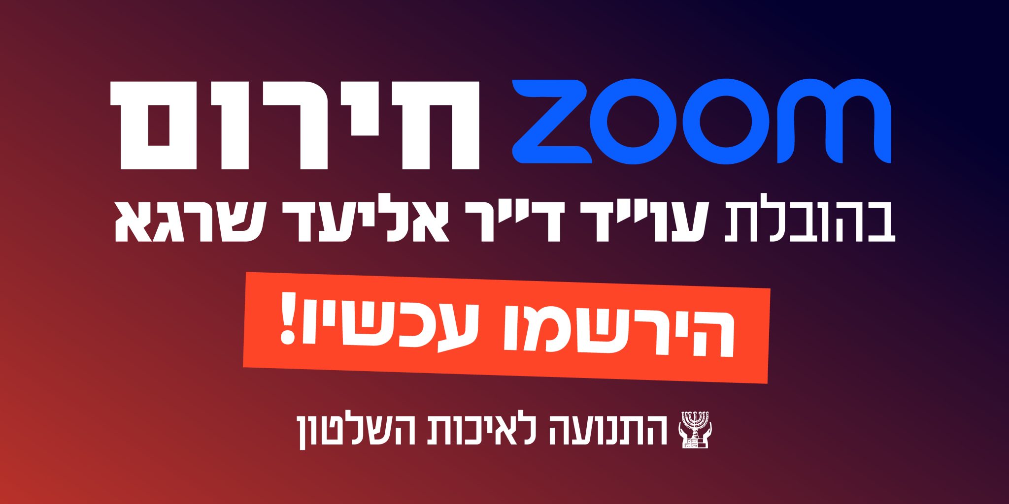הצטרפו אלינו לזום מיוחדבהובלת עו״ד ד״ר אליעד שרגאיו"ר ומייסד התנועה לאיכות השלטון